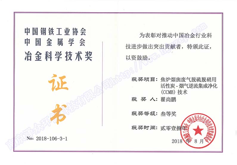 公司專長(zhǎng)于活性炭煙氣凈化技術(shù),創(chuàng)新能力突出,成功研發(fā)具有獨(dú)立自主知識(shí)產(chǎn)權(quán)的活性炭-煙氣逆流集成凈化CCMB(ActivatedCarbon Countercurrent Moving Bed)技術(shù),形成獨(dú)立自主知識(shí)產(chǎn)權(quán)體系,由中國(guó)金屬學(xué)會(huì)評(píng)價(jià)鑒定達(dá)到國(guó)際領(lǐng)先水平,獲得冶金科技三等獎(jiǎng),被評(píng)為“鋼鐵產(chǎn)業(yè)鏈綠色低碳好技術(shù)”,入選中國(guó)鋼鐵工業(yè)協(xié)會(huì)先進(jìn)節(jié)能環(huán)保技術(shù),入選生態(tài)環(huán)境部國(guó)家先進(jìn)污染防治技術(shù)目錄推廣技術(shù)。